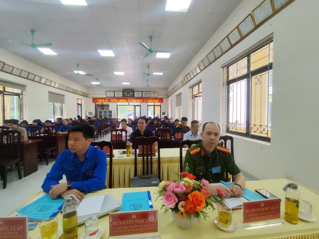 Các Đồng chí lãnh đạo xã tặng hoa chức mừng Hội Liên hiệp Thanh niên Việt Nam xã Tân Long