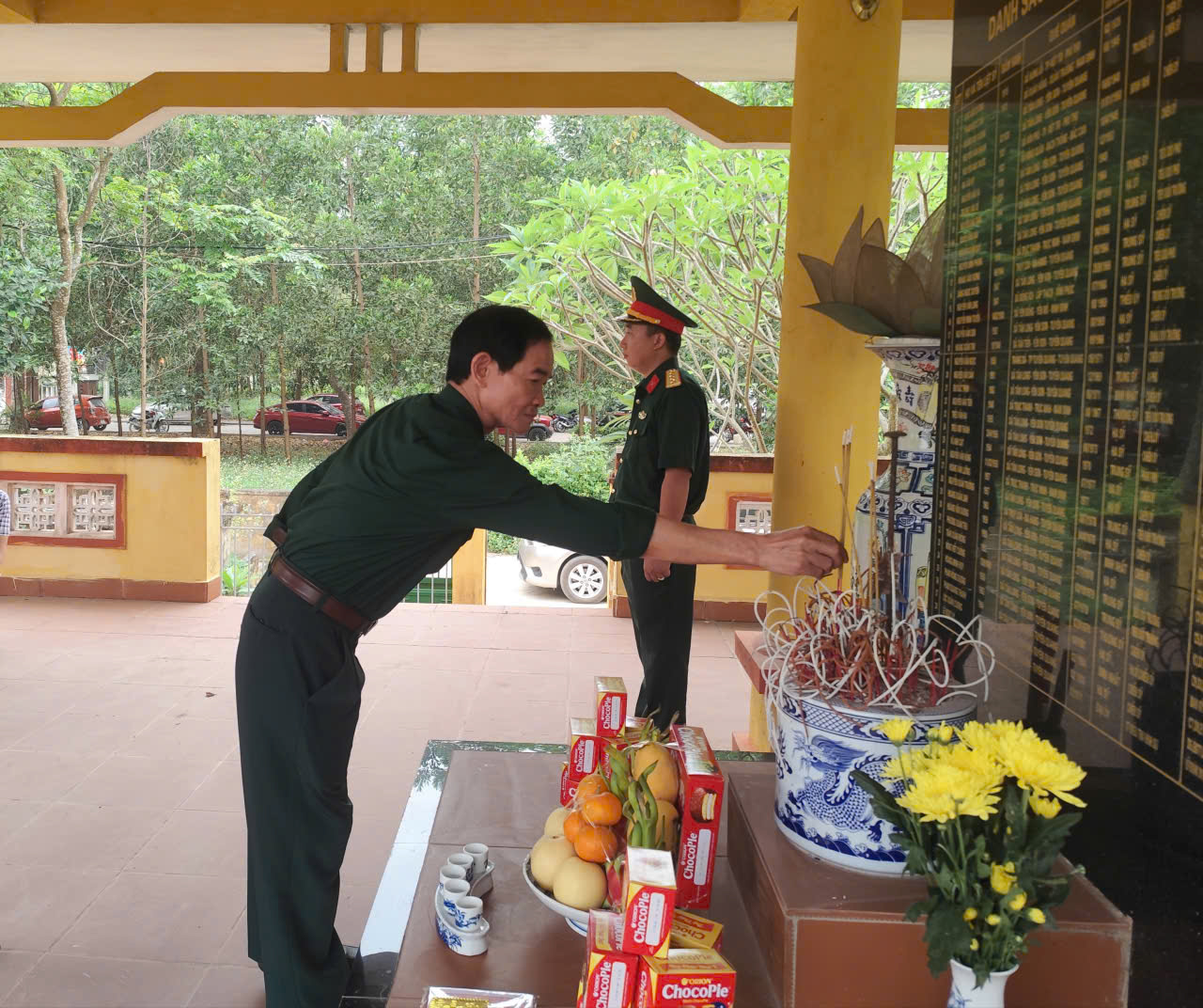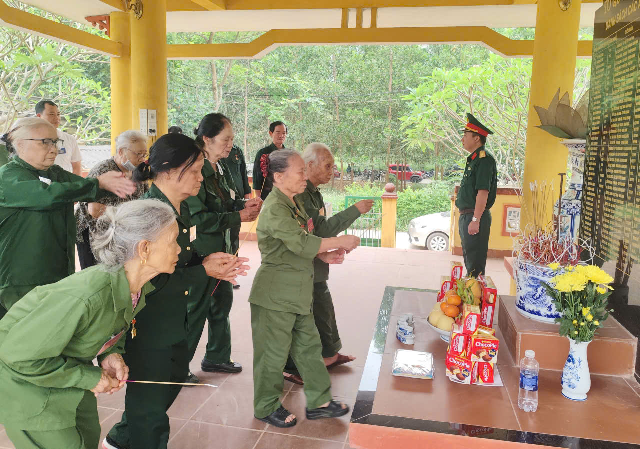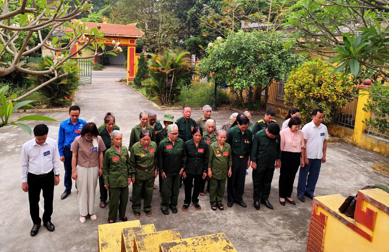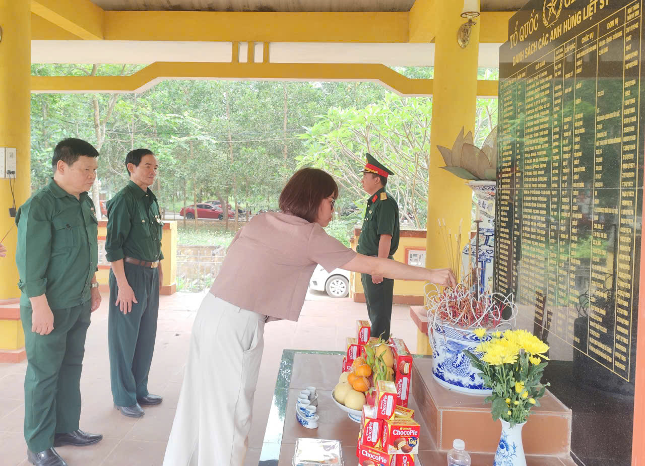 Đoàn đại biểu dâng hương tưởng nhớ các anh hùng liệt sỹ tại nhà bia thờ các anh hùng liệt sỹ xã Tân Long .