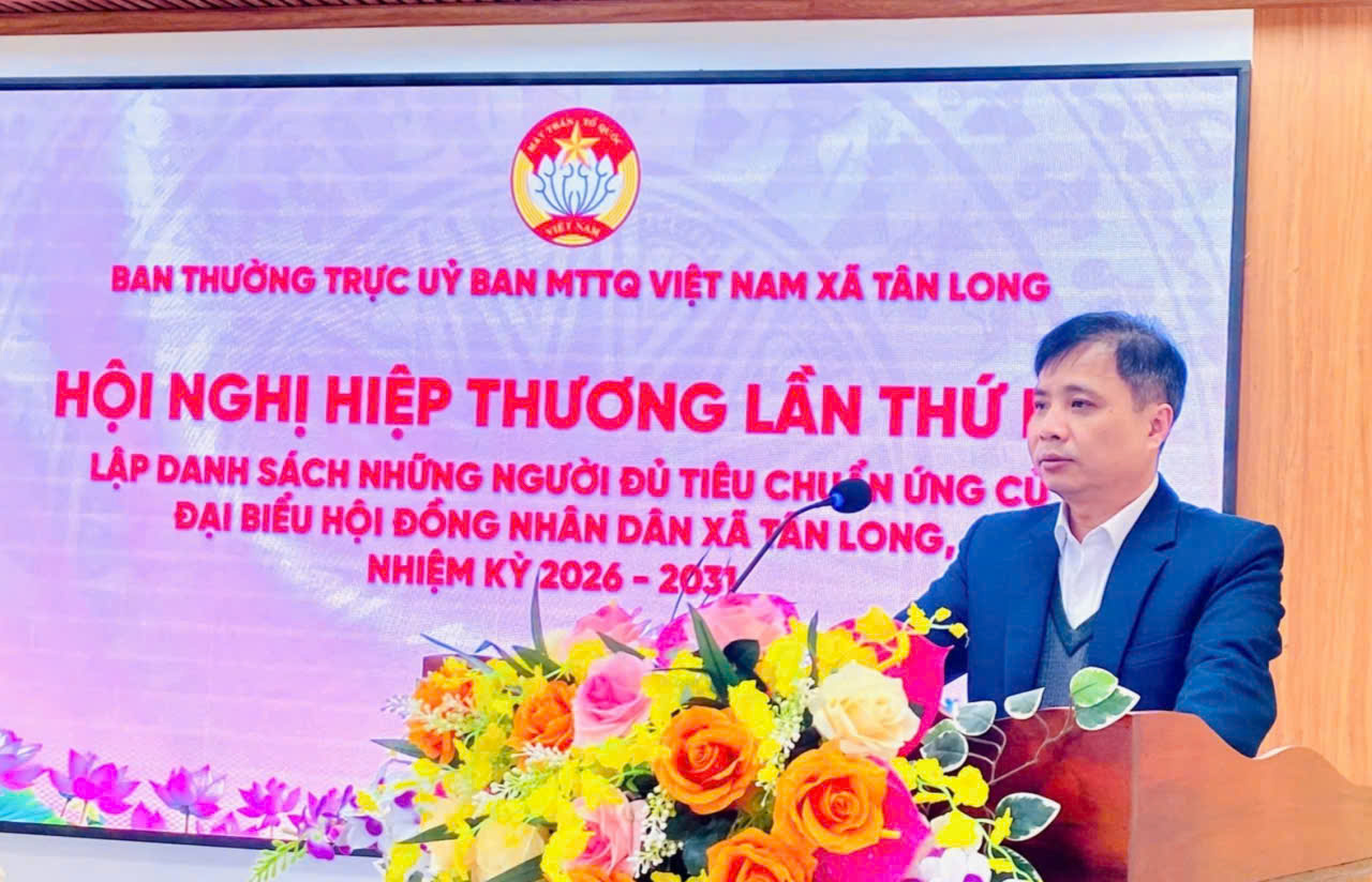 Tại hội nghị, các đại biểu đã được nghe báo cáo kết quả hiệp thương lần thứ hai lập danh sách sơ bộ những người ứng cử đại biểu Hội đồng nhân dân xã Tân Long, nhiệm kỳ 2026 – 2031 và đã có danh sách sơ bộ, Ban Thường trực Ủy ban MTTQ Việt Nam xã Tân Long đã ban hành Kế hoạch tổ chức lấy ý kiến nhận xét và tín nhiệm của cử tri nơi cư trú đối với 42 người ứng cử đại biểu HĐND xã Tân Long nhiệm kỳ 2026-2031.