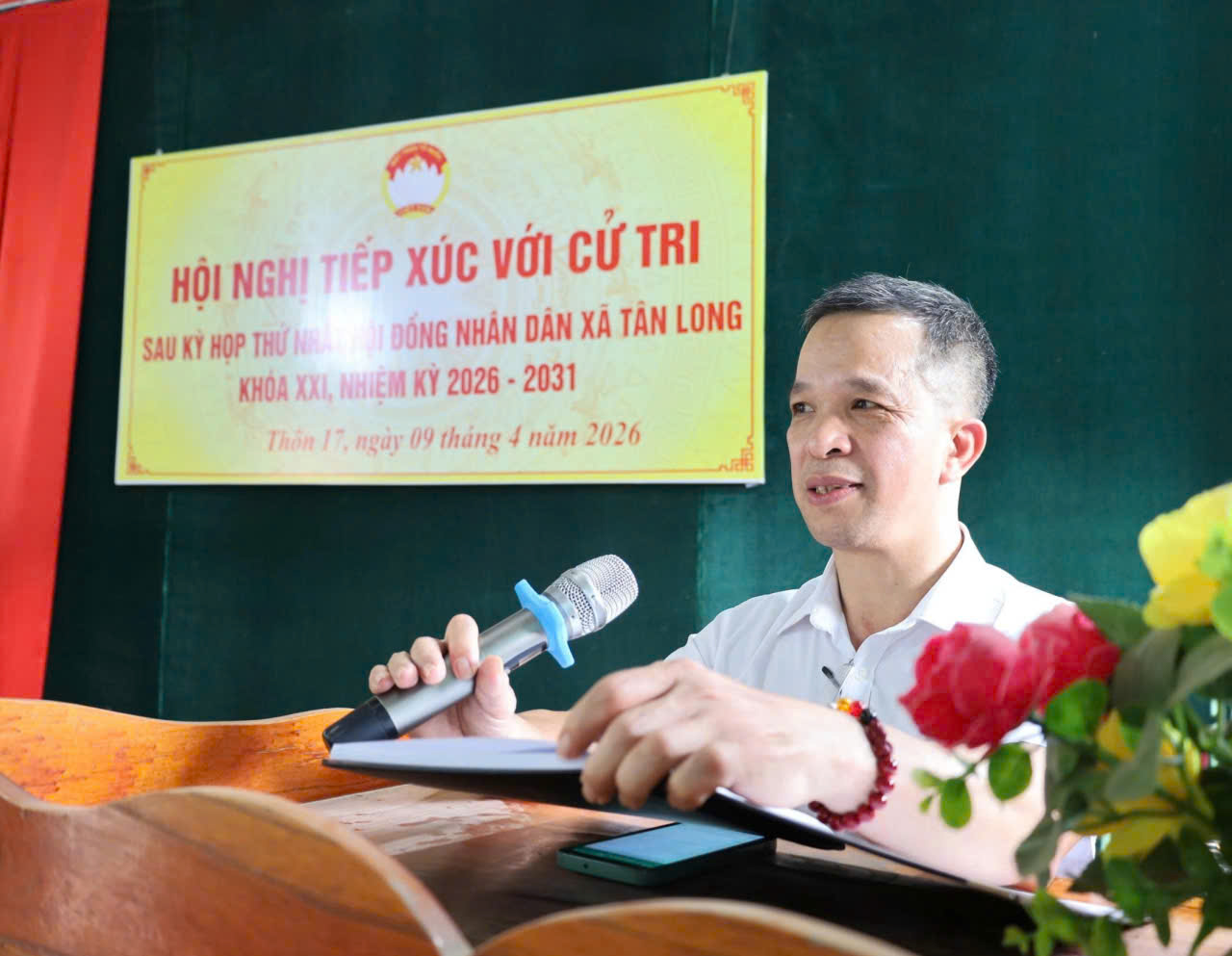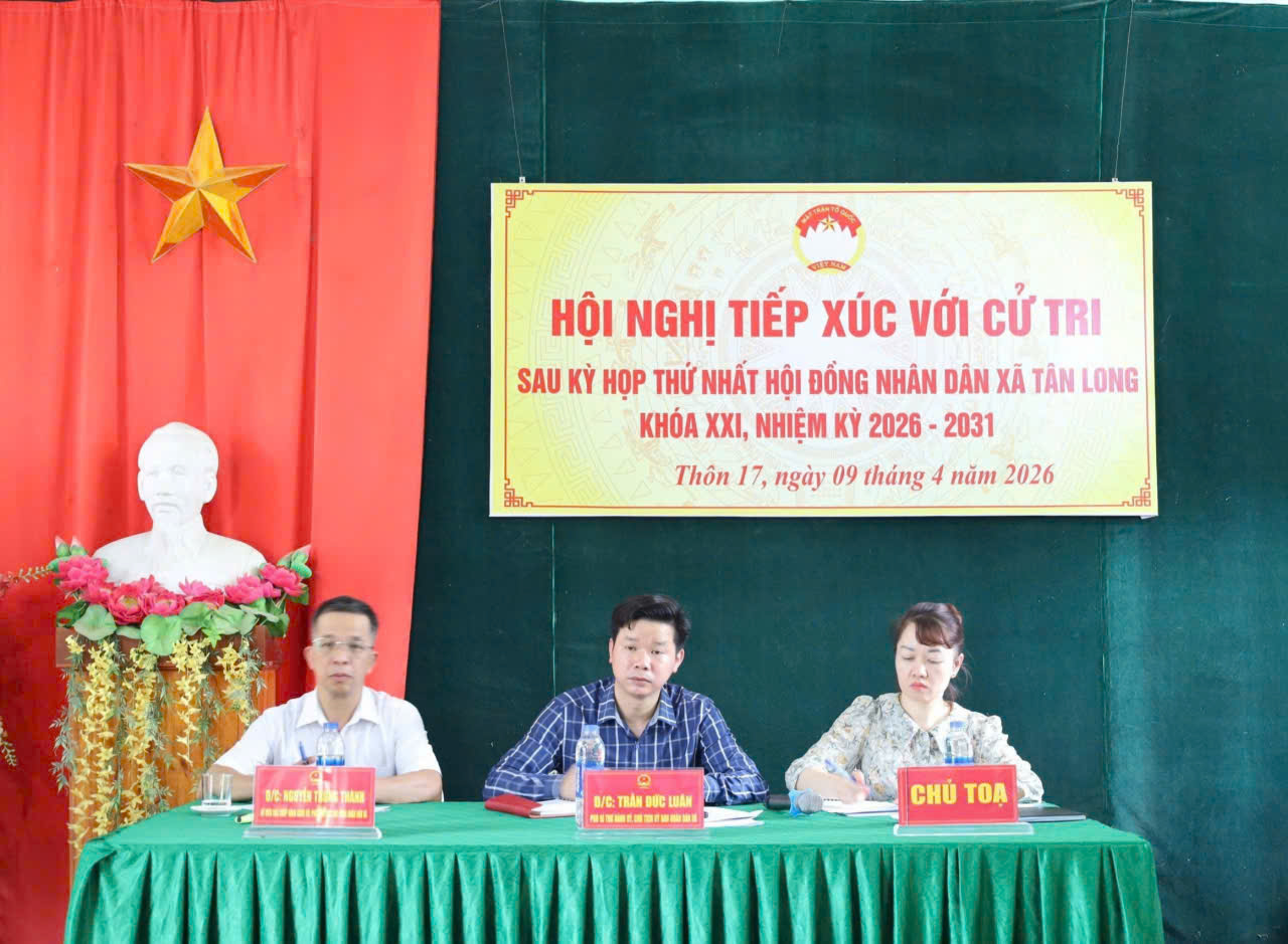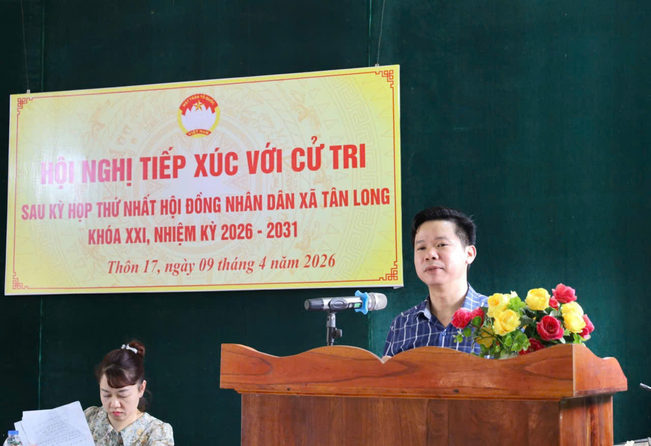 Cử tri thôn các thôn bày tỏ sự đồng tình, phấn khởi trước những kết quả xã Tân Long đã đạt được trong thời gian qua, tại buổi tiếp xúc đã có 5 ý kiến, kiến nghị nhiều nội dung liên quan như: Tiếp tục quan tâm cấp giấy chứng nhận quyền sử dụng đất ở và đất rừng; đầu tư hạ tầng giao thông nông thôn, giao thông nội đồng để phục vụ sản xuất, Nâng cấp đầu tư trạm y tế .