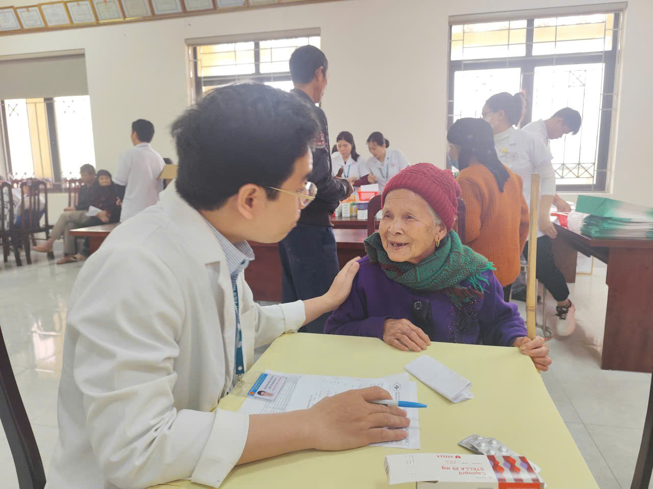 Trong chương trình, Đoàn đã thăm khám tổng quát; chủ yếu là người cao tuổi ,Trẻ em khuyết tật khám lâm sàng tổng quát; Nội khoa, nhi khoa, sản phụ khoa, siêu âm, đo huyết áp, tim mạch ,tư vấn sức khỏe, cấp phát thuốc miễn phí cho trên 300 người.