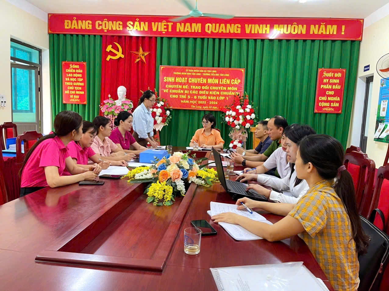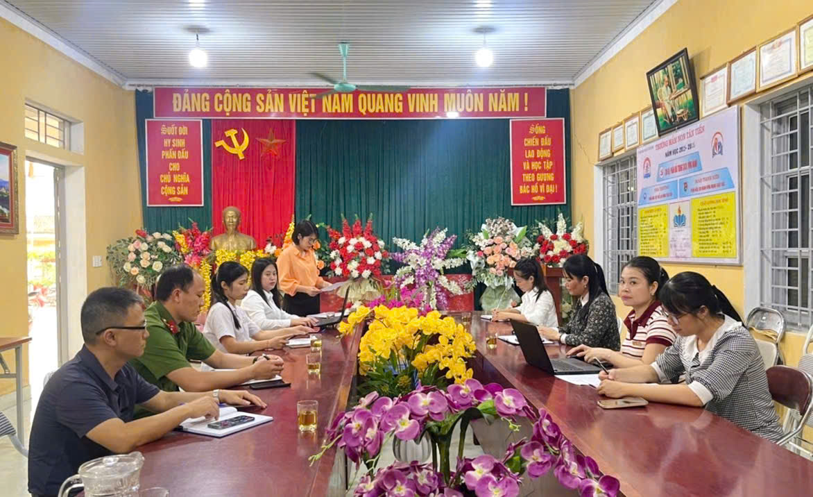 Đoàn công tác làm việc với trường Mầm non Tân Tiến xã Tân Long