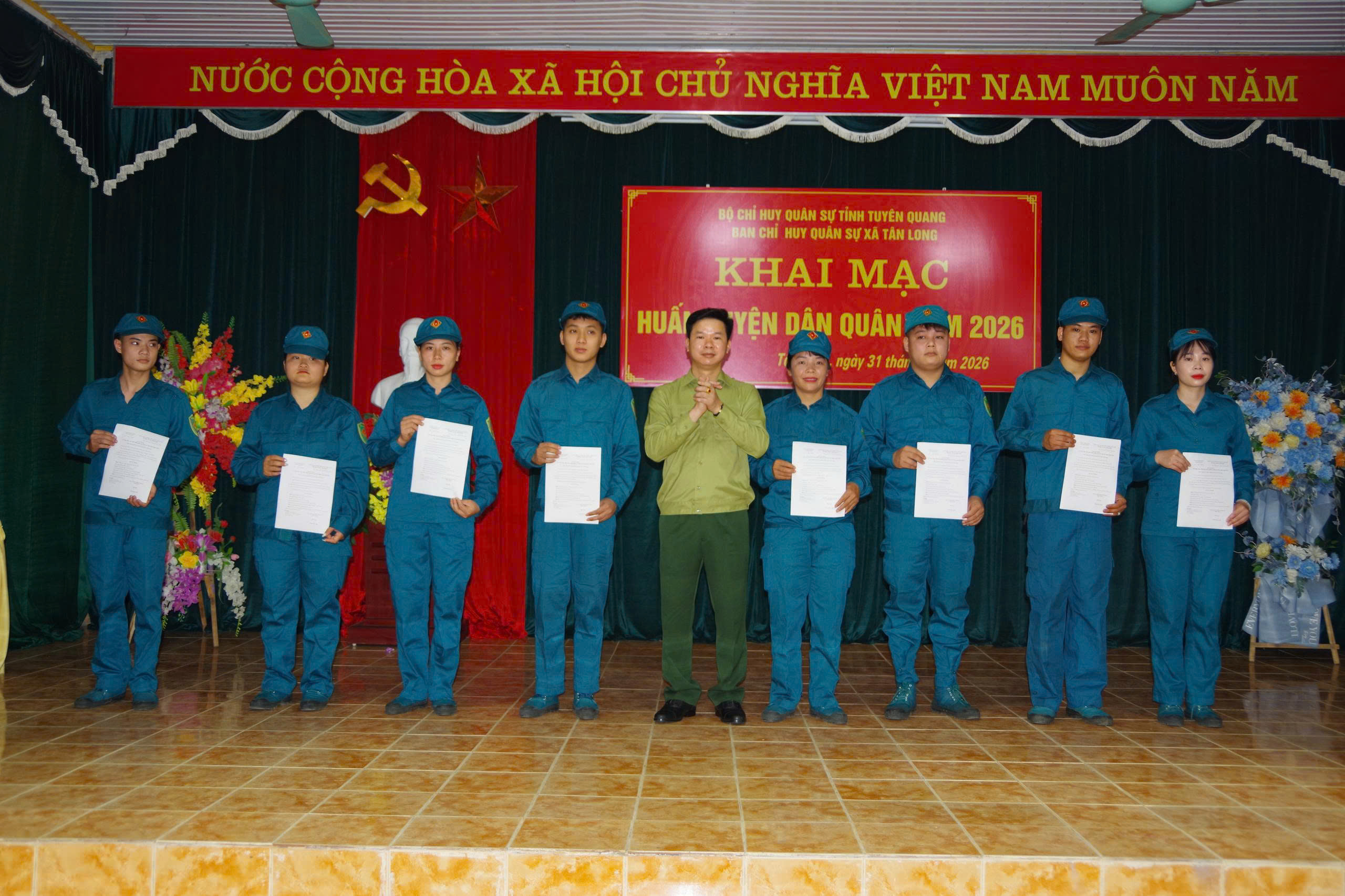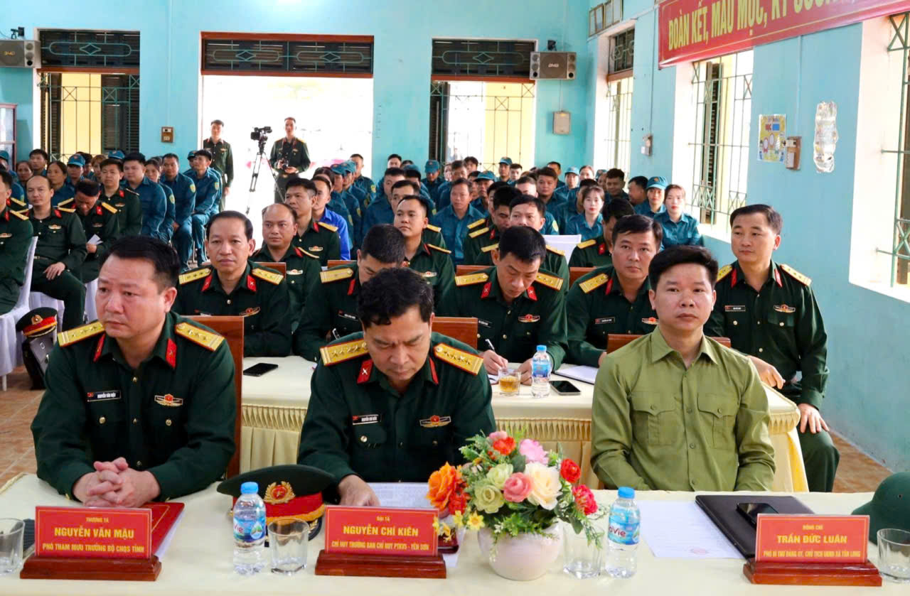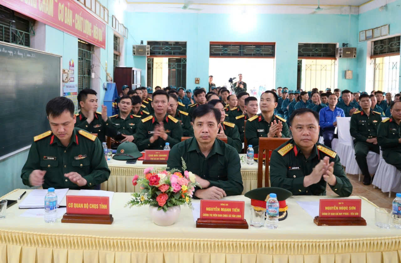 Dự lễ khai mạc có đồng chí Thượng tá Nguyễn Văn Mậu; Phó Tham mưu trưởng Bộ Chỉ huy Quân sự tỉnh, Thượng tá Vũ Quốc Khánh, Phó Chủ nhiệm Chính trị Bộ Chỉ huy Quân sự tỉnh. Về phía lãnh đạo xã có các đồng chí: Nguyễn Mạnh Tiến, Bí thư Đảng ủy, Chủ tịch HĐND, Chính trị viên Ban Chỉ huy Quân sự xã; Trần Đức Luân, Phó Bí thư Đảng ủy, Chủ tịch UBND xã. Cùng dự còn có 23 đồng chí Chỉ huy trưởng Ban Chỉ huy xã phường và 116 cán bộ chiến sỹ dân quân xã Tân Long .