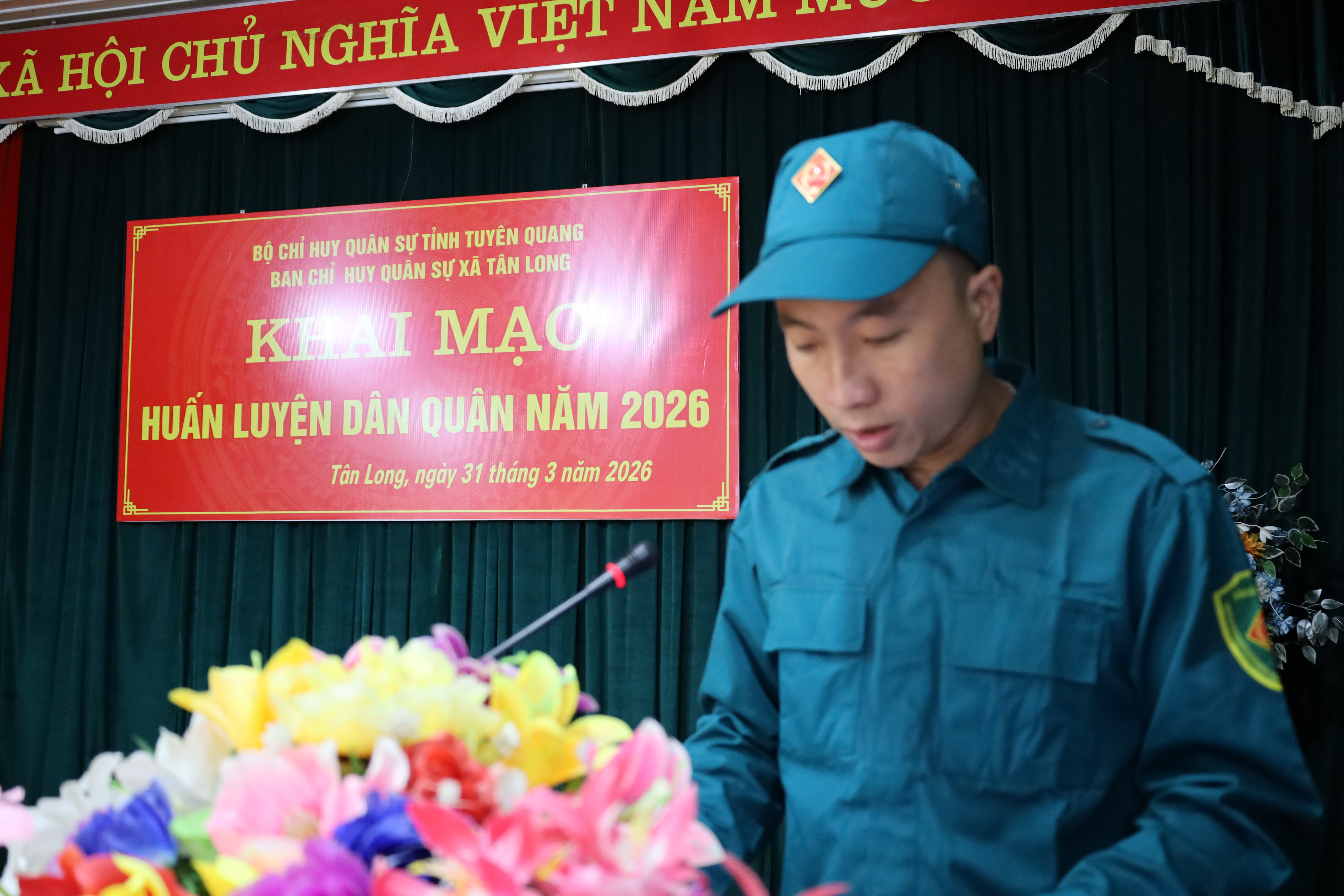 Phát biểu tại buổi lễ, đồng chí Trần Đức Luân, Phó Bí thư Đảng ủy, Chủ tịch UBND xã. nhấn mạnh công tác huấn luyện dân quân là nhiệm vụ quan trọng nhằm nâng cao trình độ, khả năng sẵn sàng chiến đấu của lực lượng dân quân, đáp ứng yêu cầu nhiệm vụ quốc phòng – an ninh trong tình hình mới. Đồng thời yêu cầu lực lượng dân quân tham gia huấn luyện nghiêm túc, chấp hành tốt kỷ luật, nắm vững nội dung chương trình huấn luyện, bảo đảm an toàn tuyệt đối về người và vũ khí trang bị; phát huy tinh thần đoàn kết, trách nhiệm, quyết tâm hoàn thành tốt các nội dung huấn luyện theo kế hoạch đề ra. Đồng thời, yêu cầu các lực lượng tham gia huấn luyện nghiêm túc, chấp hành nghiêm kỷ luật, bảo đảm an toàn tuyệt đối về người và vũ khí trang bị; nêu cao tinh thần trách nhiệm, tích cực học tập, rèn luyện nhằm đạt kết quả cao nhất.