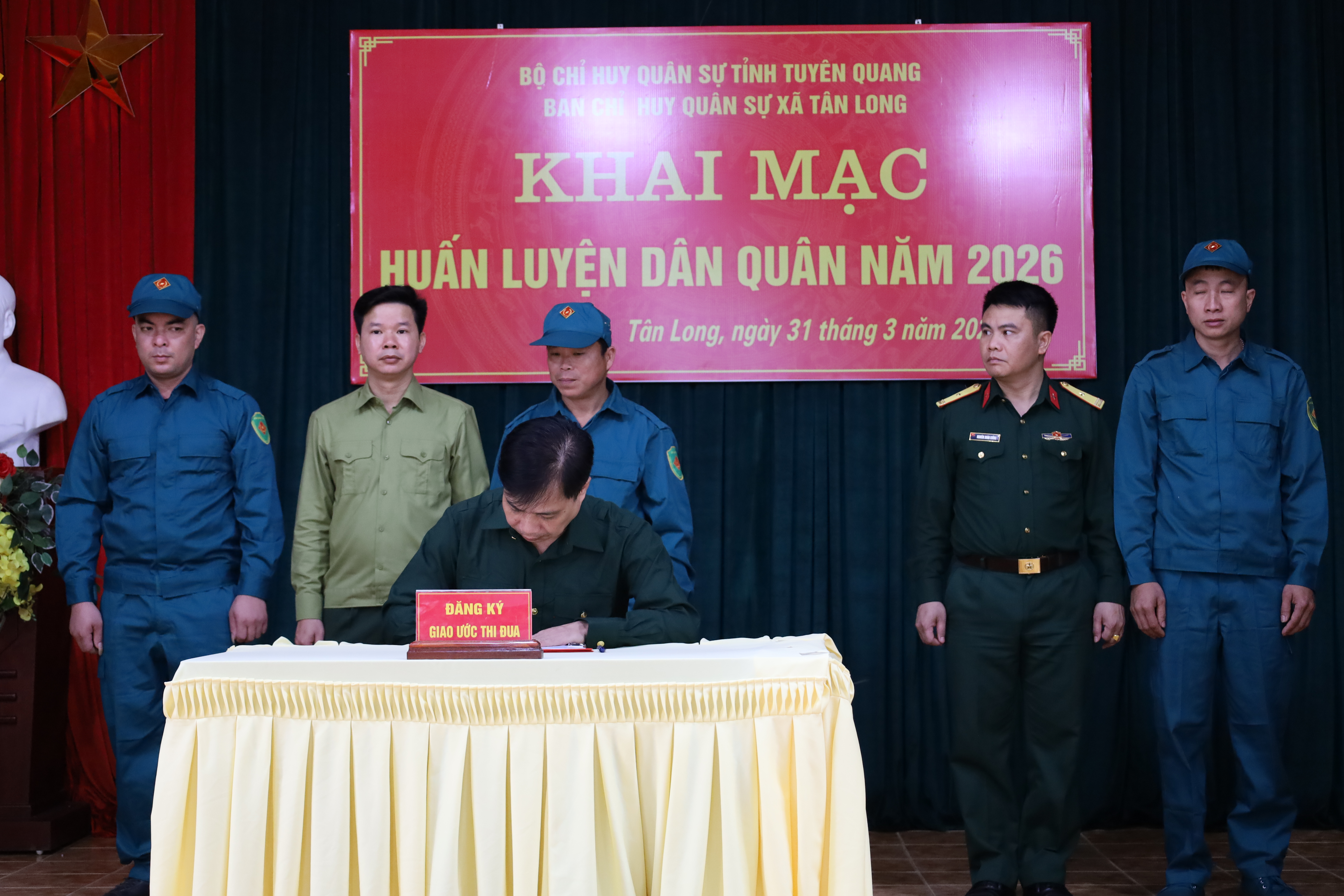 Nhân dịp này, Ban Chỉ huy Quân sự xã đã công bố các Quyết định ra quân đối với các chiến sĩ dân quân hoàn thành nghĩa vụ; đồng thời công bố Quyết định tuyển chọn, kết nạp lực lượng dân quân mới tham gia lực lượng dân quân xã.Và Phát động thi đua và Ký kết giao ước thi đua.