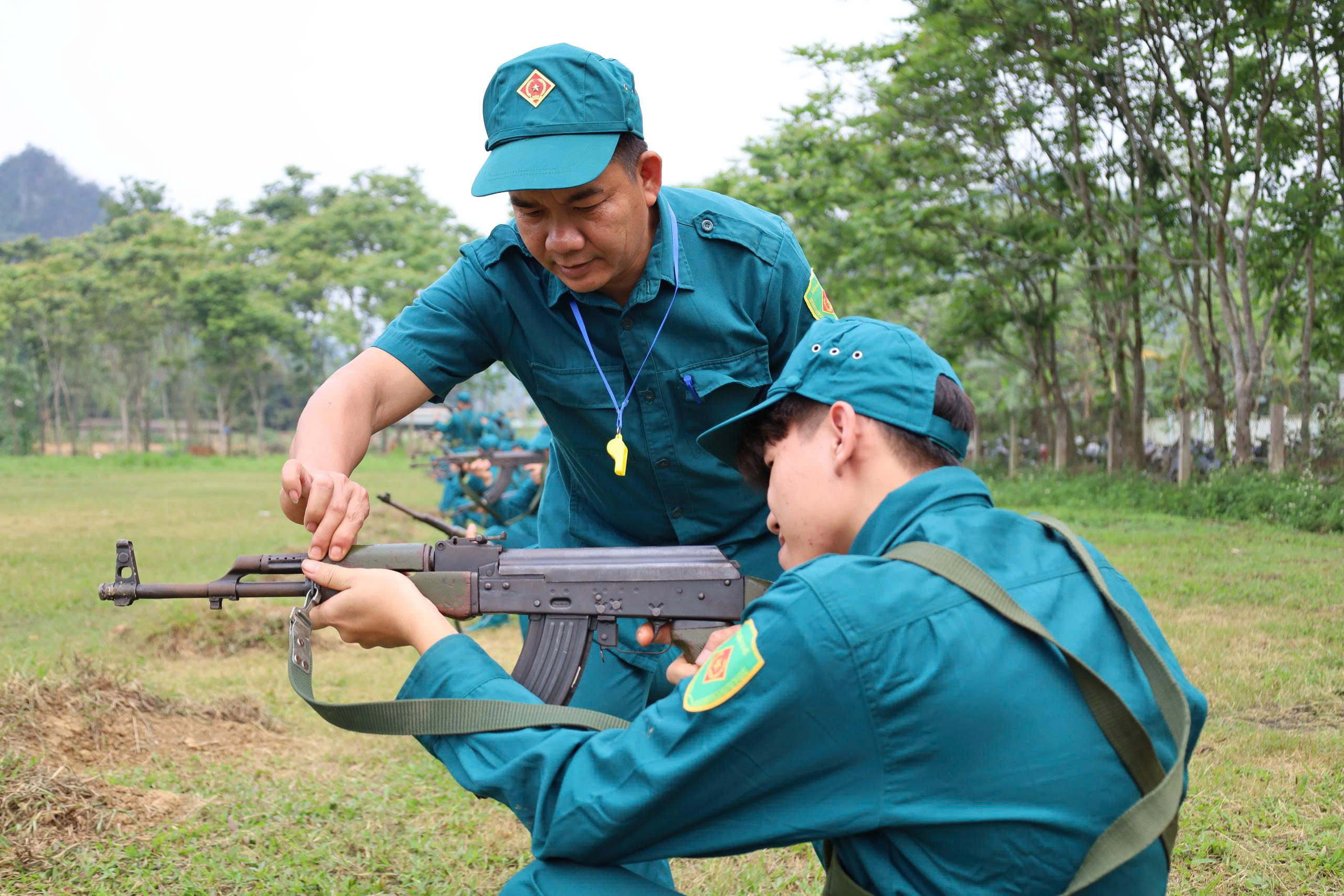 Tại thao trường, lực lượng dân quân được cán bộ Ban CHQS xã là sĩ quan chính quy trực tiếp huấn luyện, hướng dẫn, uốn nắn từng động tác, thực hiện đúng phương châm “cơ bản, thiết thực, vững chắc”, huấn luyện từ thấp đến cao, từ đơn giản đến phức tạp, góp phần nâng cao chất lượng huấn luyện.