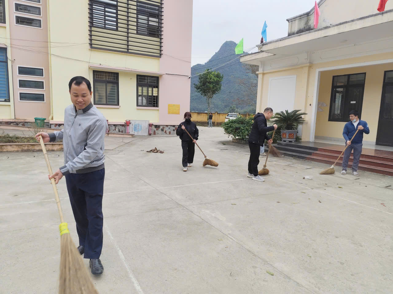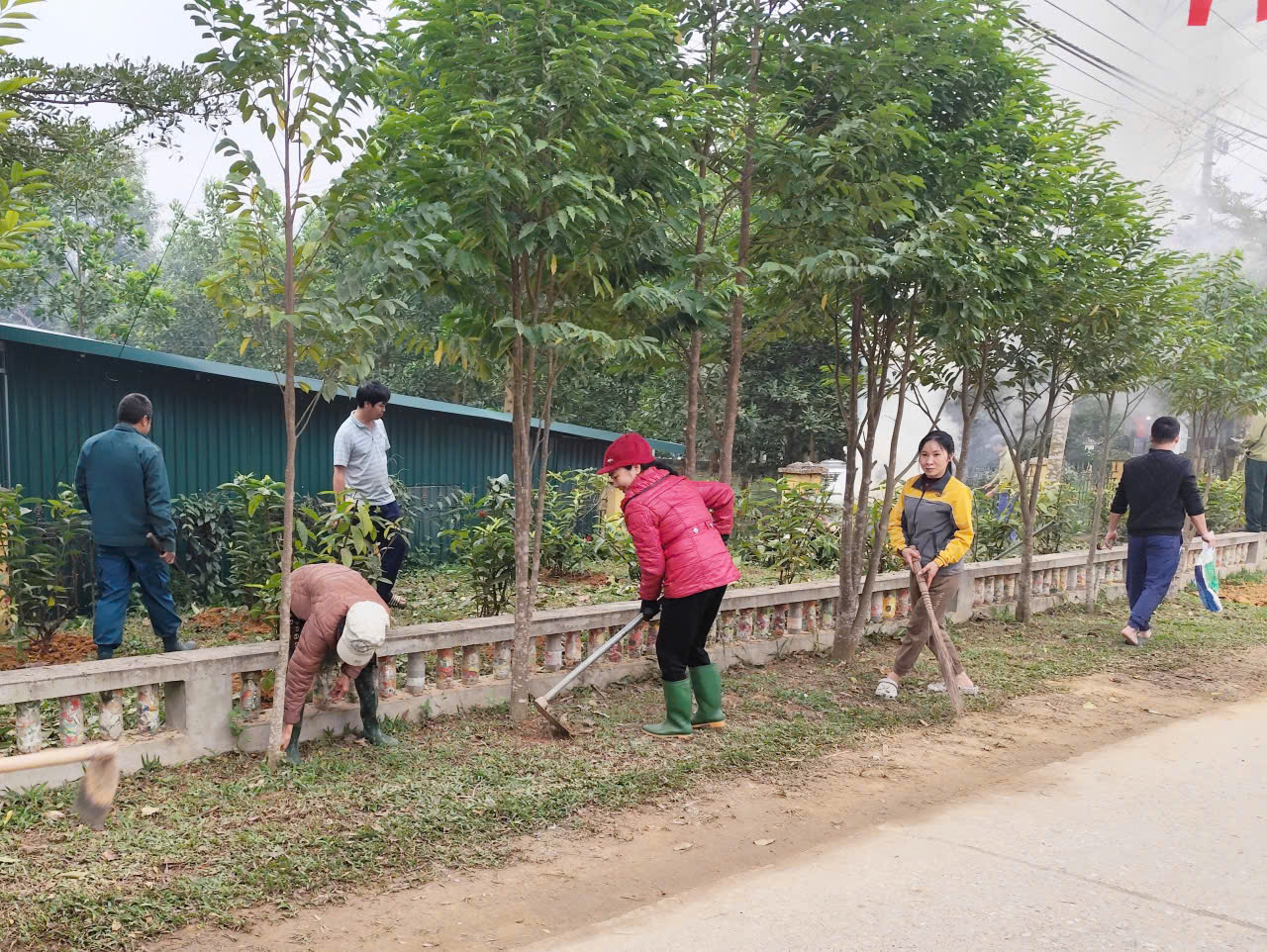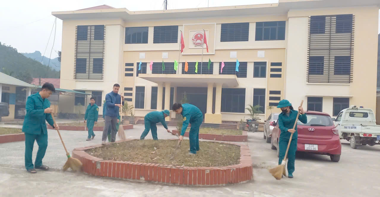 Ra quân tổng vệ sinh, khu vực công cộng, khuôn viên trụ sở, trường học, Trạm y tế, các tuyến đường, ngõ xóm, phát quang bụi rậm, cắt tỉa cây xanh. Vận động hộ gia đình dọn dẹp vệ sinh nhà ở, sân vườn, khu vực trước cổng, ngõ xóm, thu gom rác thải, không để rác thải tồn đọng gây ô nhiễm môi trường, huy động 100% cán bộ công nhân viên chức và nhân dân tham gia công tác vệ sinh môi trường tại 2 thôn , thôn 5 và 21,các thôn còn lại tổ chức ra quân thực hiện vệ sinh trên địa bàn thôn của mình, vệ sinh đường, khu công cộng, nhà văn hóa, các hộ gia đình thực hiện tổng vệ sinh nhà ở, trỉnh trang khuôn viên, sạch, đẹp, gọn gàng.